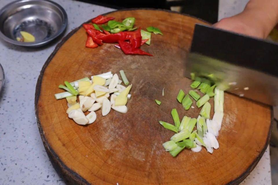 2、五花肉去皮后切成薄薄的片,木耳提前泡好,再准备点蒜子、姜片、葱段,这样食材就准备都全了。